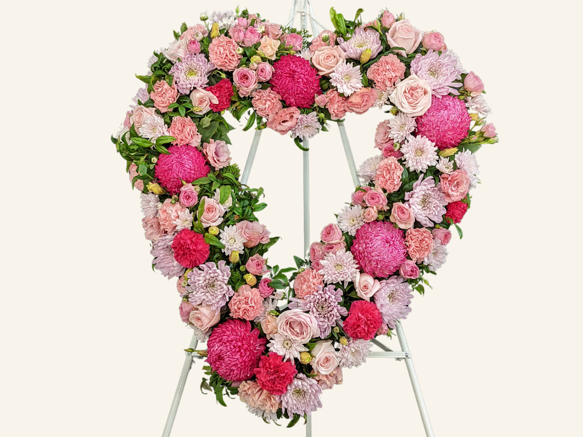 This pink heart tribute is handcrafted by our expert florists at Belfield Blooms, your trusted local florist in Belfield. We proudly deliver funeral and sympathy flowers across Sydney, Inner West, Canterbury-Bankstown, Strathfield, Burwood, and surrounding suburbs.