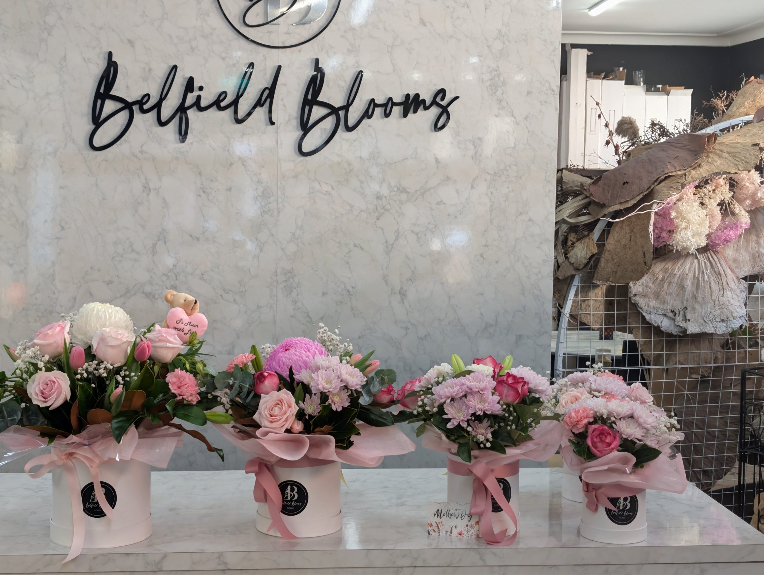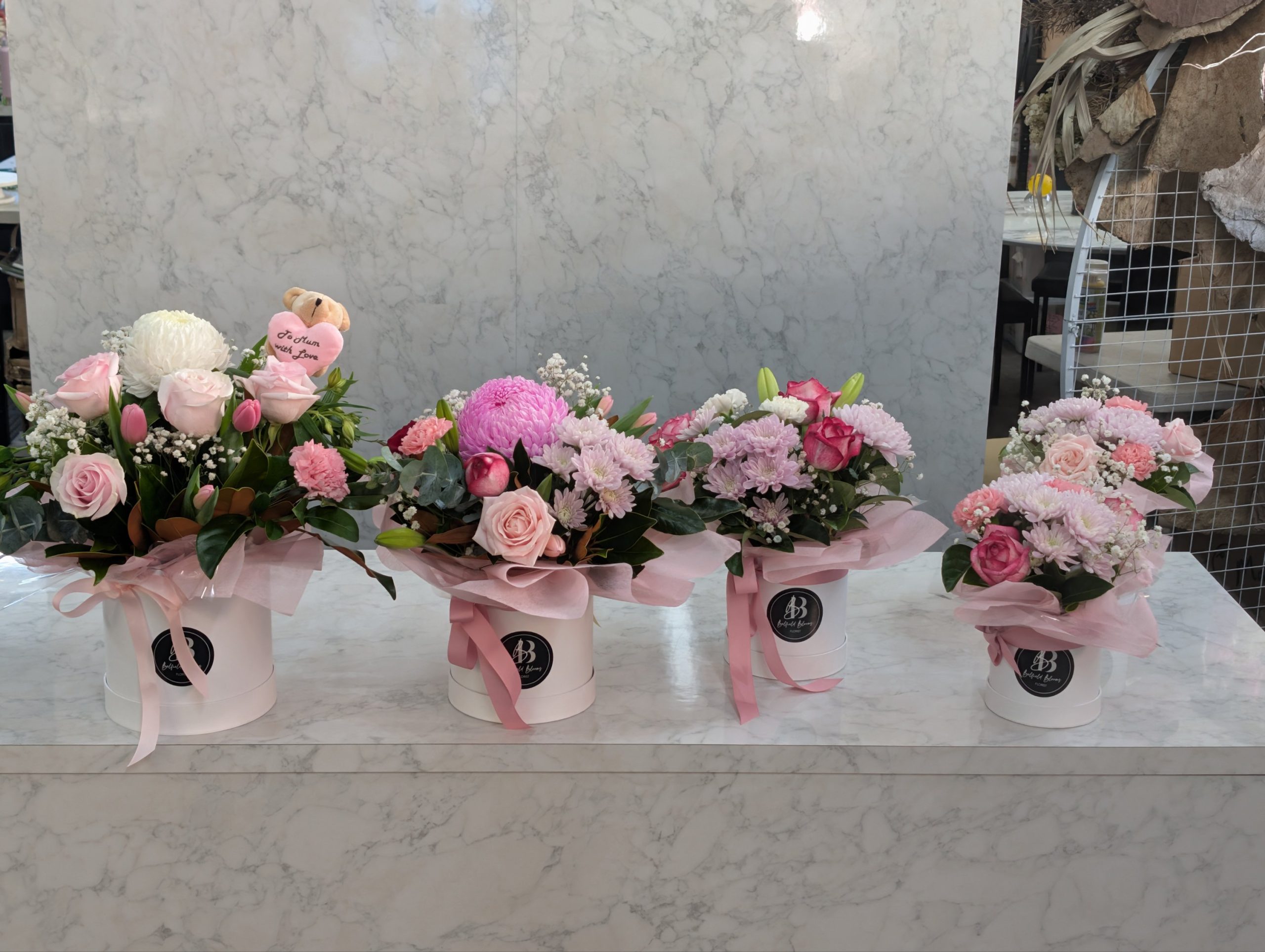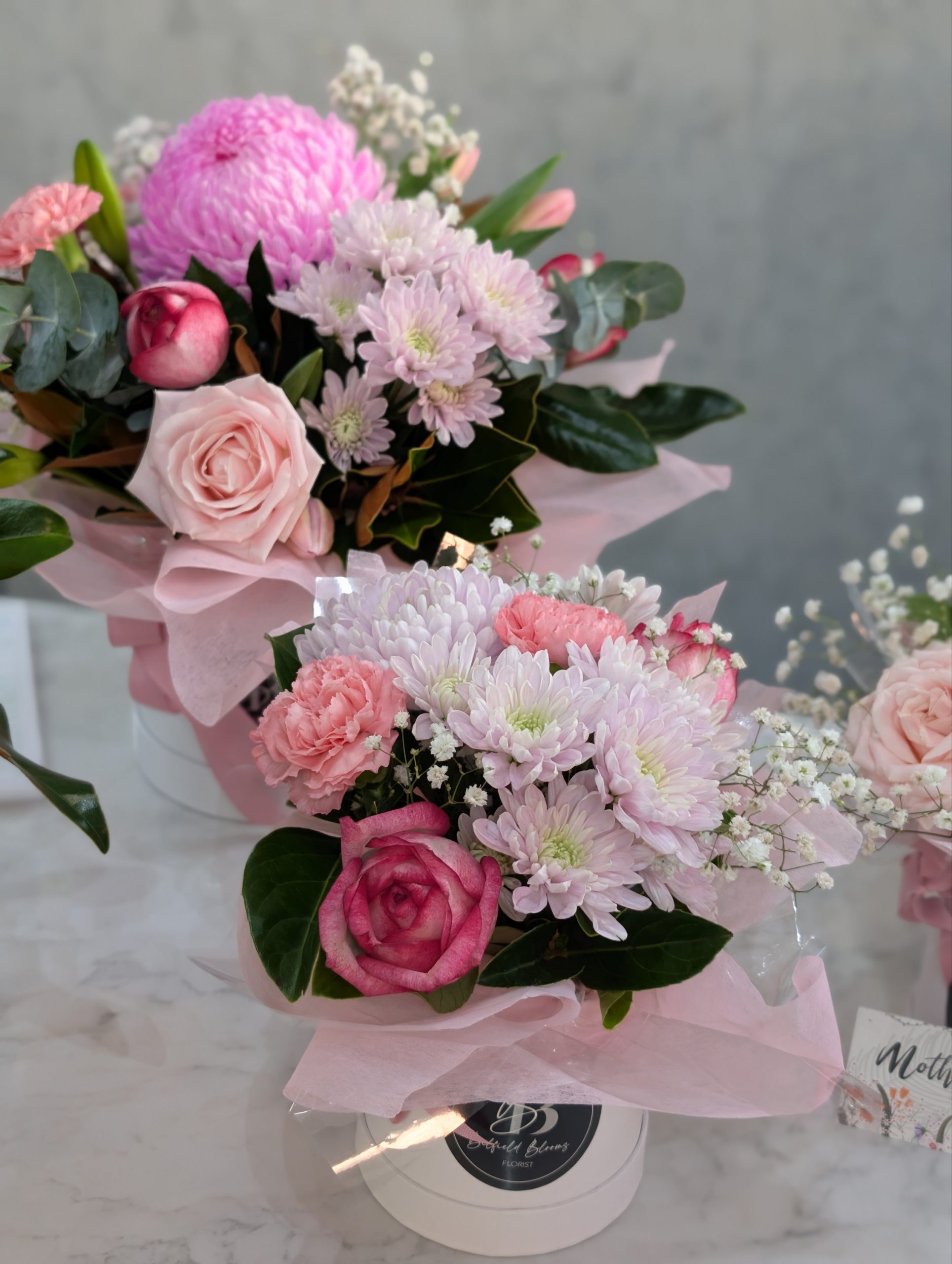 Each piece is florist-designed using the freshest flowers available at market, ensuring a full, balanced, and premium look while maintaining the signature “Sweet Mum” style.