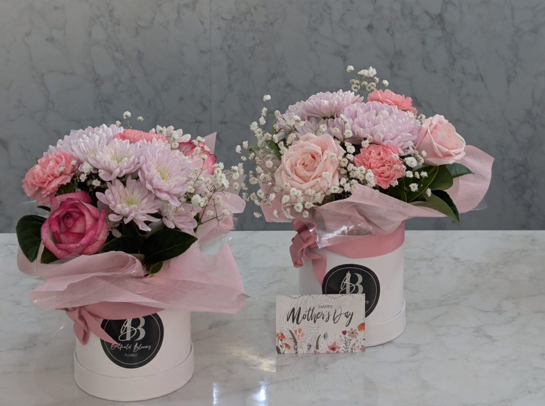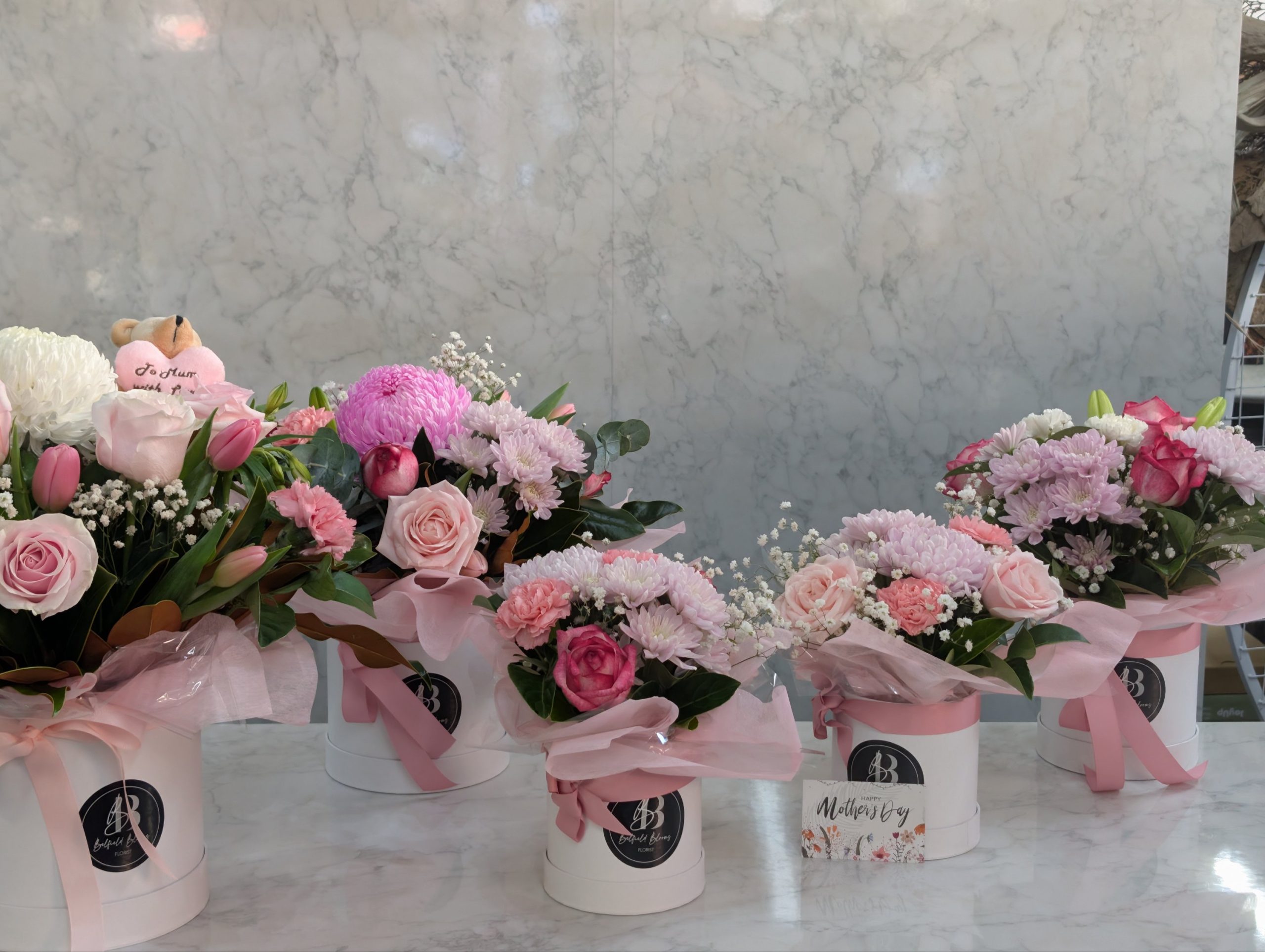 Hatbox arrangements are perfect for effortless gifting — no need for a vase, easy to transport, and designed to hold their shape beautifully. Whether you’re visiting Mum or sending a surprise delivery, this arrangement arrives ready to impress.
